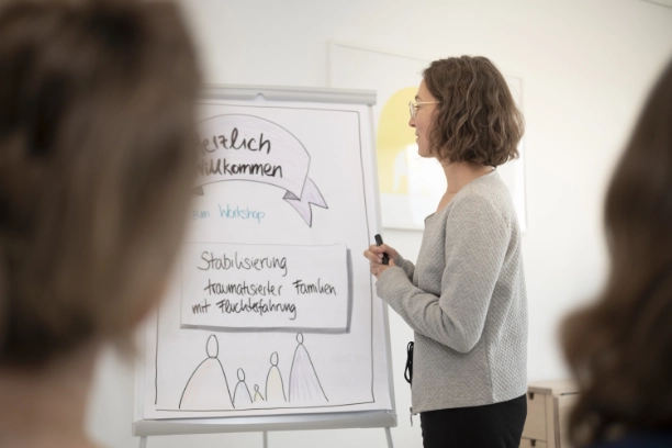 So geht es z.B. unter dem Thema „Stabilisierung traumatisierter Familien mit Fluchterfahrung“ darum, wie Eltern mit ihren Kindern und Jugendlichen mit belasteten Lebensgeschichten unterstützt werden können, und wie z.B. diese Belastungen niederschwellig pädagogisch und therapeutisch aufgefangen werden, so dass neben dem Ankommen Raum für Verarbeitung und ein Gefühl von neuer Sicherheit entstehen kann.